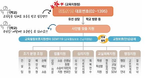 물론 솔직히 물어야 할 것들도 있다. 매뉴얼이 정교하게 설계된 만큼 현장 구현의 문제는 별개다. SEM119의 대표전화(02-1395) 운영 시간은 평일 오전 9시에서 오후 6시까지다. 하지만 실제 교육활동 침해가 가장 심각해지는 순간은 종종 그 시간 바깥에 존재한다. 효율적인 운영을 위해 시간 제한이 필요하겠지만 아쉽다. 긴급지원팀이 실제로 얼마나 신속하게 현장에 투입될 수 있는지, 심리상담 서비스가 소외된 지역의 교사들에게도 동등하게 접근 가능한지는 제도의 설계가 아닌 현장의 체감으로 평가받아야 한다.