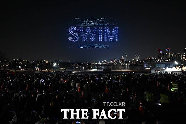 이날 열린 드론 라이트 쇼에서는 BTS 멤버들의 모습과 이번 정규앨범의 타이틀곡 'SWIM'의 모습 등을 보여주며 팬들의 마음을 사로잡았다.