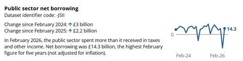 영국의 지난 2월 정부의 재정 적자가 급증하며 시장 전망치를 크게 하회한 것으로 나타났다.