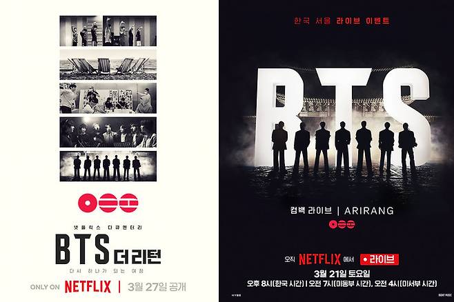 넷플릭스는 이번 'BTS 컴백 라이브: ARIRANG'을 통해 전 세계 시청자들이 같은 시간, 같은 무대를 경험할 수 있는 '동시적 문화 경험'을 확장하고, K팝 공연이 글로벌 플랫폼 위에서 어떻게 새로운 방식으로 연결될 수 있는지를 제시할 계획이다. 21일 오후 8시 광화문에서 펼쳐질 'BTS 컴백 라이브: ARIRANG'은 넷플릭스를 통해 전 세계에 생중계된다.