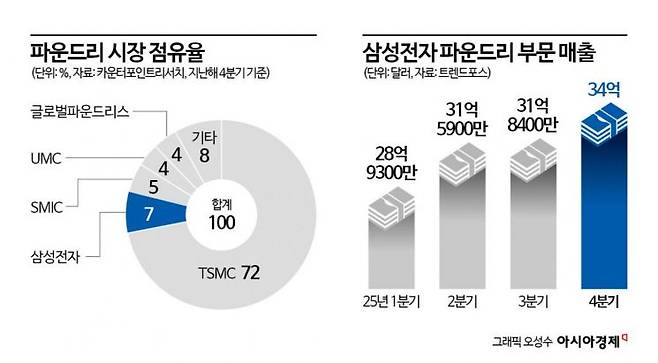 파운드리 사업은 첨단 공정 투자가 선행되는 구조 탓에 그동안 수익성이 낮았다. 극자외선(EUV) 장비 도입과 선단 공정 투자 부담으로 2022년 이후 분기마다 1조원 수준의 적자가 이어졌다.