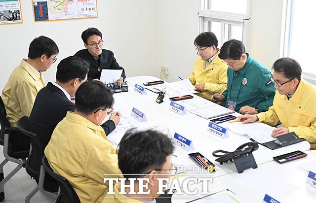 [더팩트ㅣ박헌우 기자] 김민석 국무총리가 그룹 방탄소년단(BTS)의 컴백 공연을 앞둔 21일 오전 서울 종로구 세종문화회관에 마련된 통합현장본부에서 발언하고 있다.