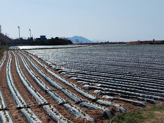 | ▲ 감자 멀칭 비닐 회천면 일대가 감자 주산지인가 보다. |