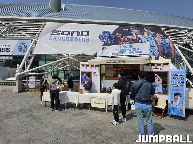 [점프볼=고양/홍성한 기자] 고양 소노 아레나 앞에 도착한 커피차에는 많은 의미가 담겨 있었다.