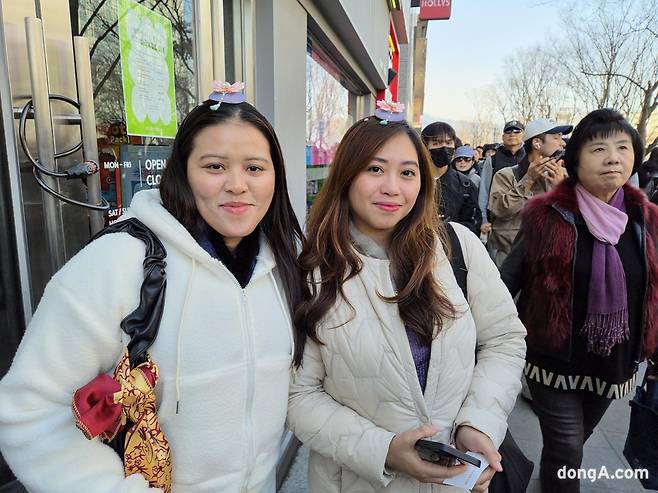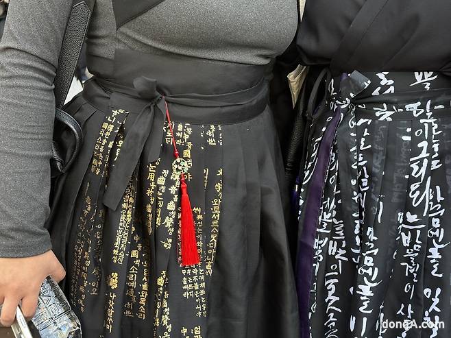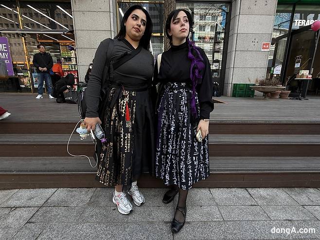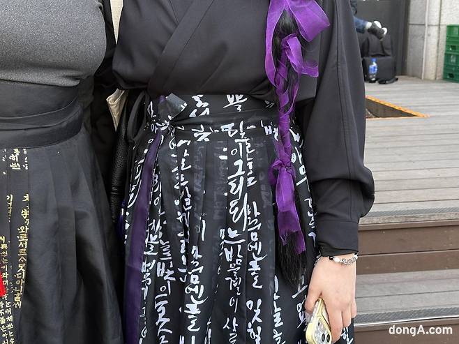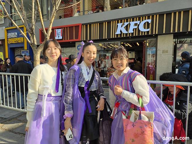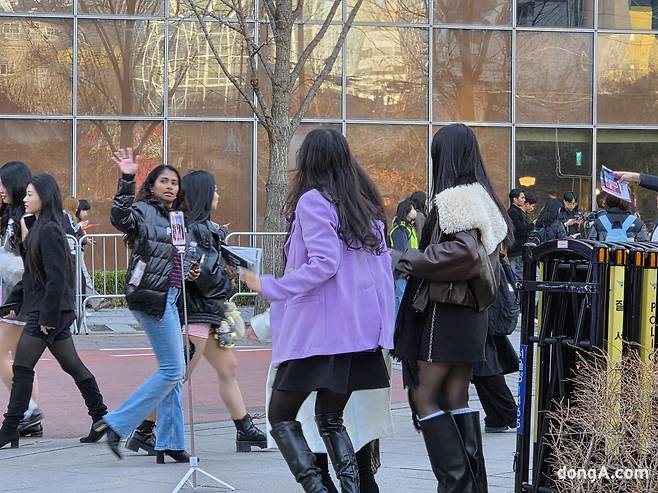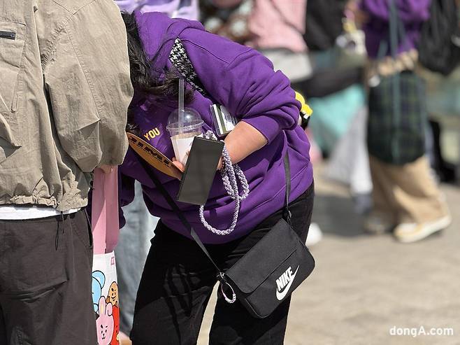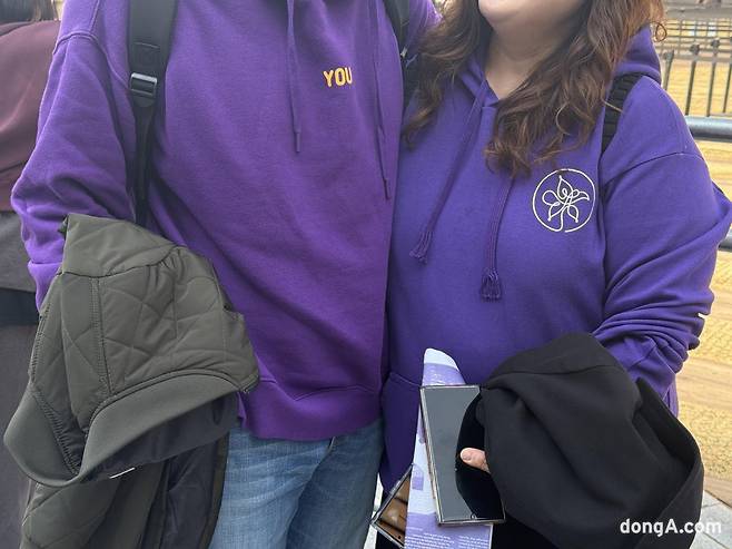 광장 곳곳에는 보라색을 중심으로 자신만의 스타일을 완성한 팬들이 눈에 띄었다. 20대 외국인 여성 두 명은 한국풍 머리띠와 보자기 스카프로 멋을 내 ‘한국 사랑’을 드러났다.