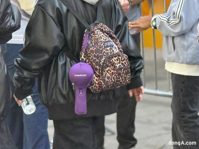 머리부터 발끝까지 보라색으로 맞춰 입은 팬도 있었다. 모자와 상의, 가방까지 모두 보라색으로 통일한 여성 팬은 “드레스 코드가 따로 있는 건 아니지만 팀 컬러라서 자연스럽게 맞춰 입게 됐다”고 웃었다. 그는 “본 티켓팅에는 실패했지만 추가 티켓팅으로 겨우 표를 구했다”고 덧붙였다.