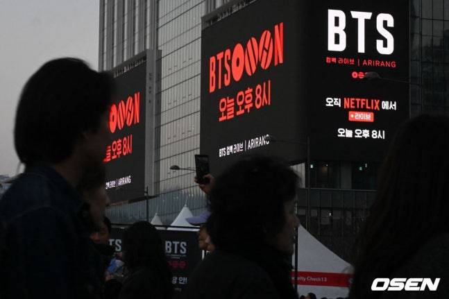 이처럼 공연 전부터 SNS에는 현장 인증과 기대감이 쏟아지며 축제 분위기가 이어지고 있다. 연예계 선후배들 역시 한목소리로 방탄소년단의 컴백 무대를 응원하며 의미 있는 순간을 함께하고 있다.