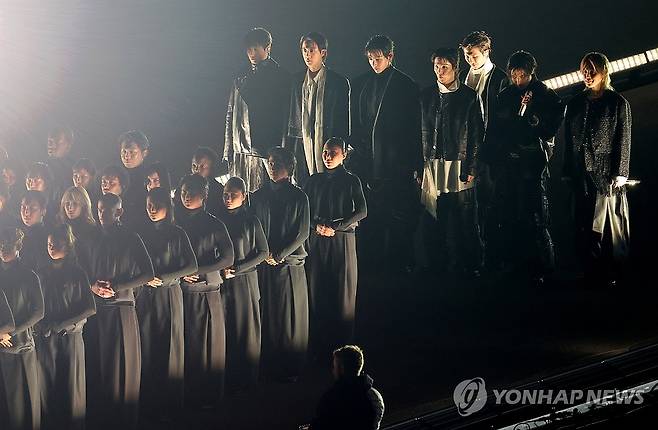 (서울=연합뉴스) 그룹 방탄소년단(BTS)이 21일 서울 광화문 광장에서 정규 5집 '아리랑'(ARIRANG) 발매를 기념해 연 무료 공연 'BTS 컴백 라이브: 아리랑'(BTS THE COMEBACK LIVE|ARIRANG)을 위해 무대에 입장하고 있다. 2026.3.21 [사진공동취재단]