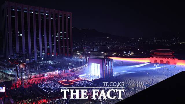 [더팩트ㅣ배정한 기자] 3년 9개월 만에 완전체로 복귀하는 방탄소년단(BTS)의 'BTS 컴백 라이브: ARIRANG' 공연이 21일 서울 광화문광장 일대에서 펼쳐지고 있다.