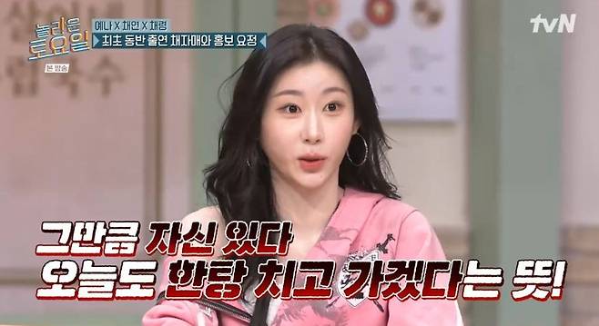 '놀토' 두 번째 출연인 이채연은 동생 채령에게 승부욕을 느낀다며 "동생이 항상 '놀토'에서 좋은 활약을 하다 보니 녹화 전 어머니가 '너도 지지 마라'고 해주셨다"고 입을 뗐다.