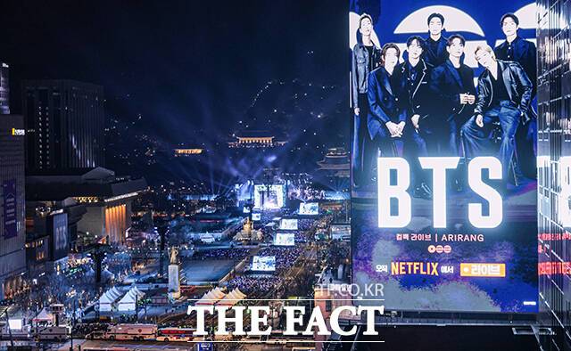 BTS의 컴백쇼 'ARIRANG'은 이날 오후 8시부터 약 1시간 동안 진행됐다. 해당 공연은 글로벌 스트리밍 서비스 넷플릭스에서 생중계됐다.
