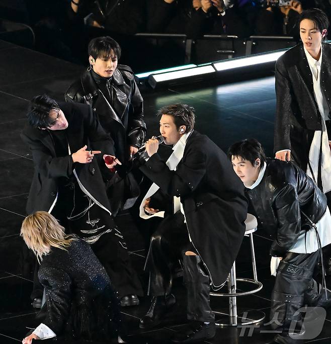 (서울=뉴스1) 사진공동취재단 = 그룹 방탄소년단(BTS)의 리더 RM이 21일 서울 광화문 광장에서 열린 'BTS 컴백 라이브: 아리랑'(BTS THE COMEBACK LIVE | ARIRANG)에서 공연을 펼치고 있다. 2026.3.21/뉴스1