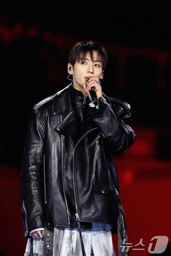 (서울=뉴스1) = 방탄소년단(BTS) 정국이 21일 서울 광화문광장에서 'BTS 컴백 라이브: 아리랑' 발매 기념 컴백 공연을 하고 있다. (빅히트 뮤직·넷플릭스 제공. 재판매 및 DB 금지) 2026.3.22/뉴스1