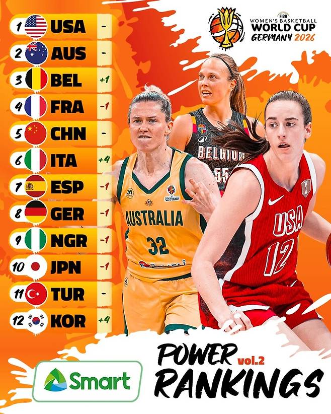 FIBA(국제농구연맹)는 20일(한국시간) 공식 홈페이지를 통해 2026 FIBA 여자농구 월드컵 두 번째 파워 랭킹을 발표했다.