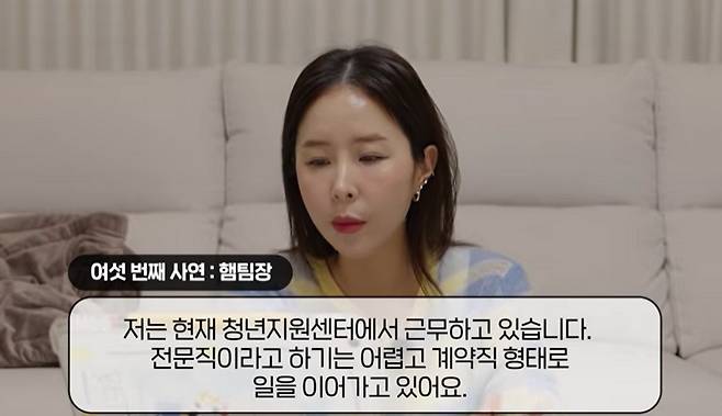 지난 18일 신지는 자신의 채널에 '이런 고민까지 온다고? 솔직하게 답해봤습니다'라는 제목의 영상을 공개했다. 이날 그는 한 팬이 보내온 사연을 직접 소개하는 시간을 가졌다. "결혼한 지 6개월 된 30대 중반 남자"라고 신원을 밝힌 팬은 "현재 청년 지원센터에서 근무하며 계약직 형태로 일을 이어가고 있다"고 설명했다. 그러면서 "직원을 안정적으로 채용하는 부서가 아니라 구조적으로 계속 계약직이 반복된다"며 "늘 계약 기간이 다가오면 '또 어디로 가게 될까? 언젠가는 떠나야 하는 거 아닐까' 하는 부담이 있다"고 토로했다.