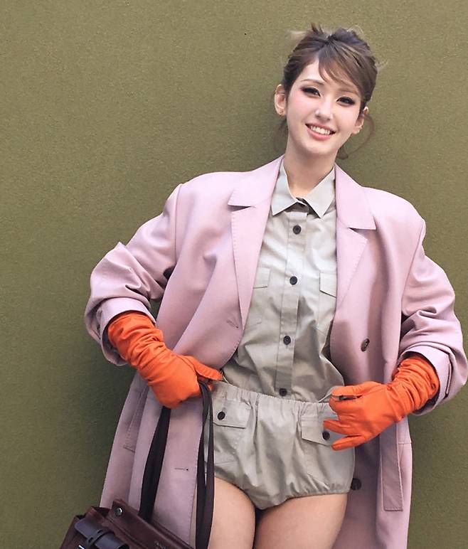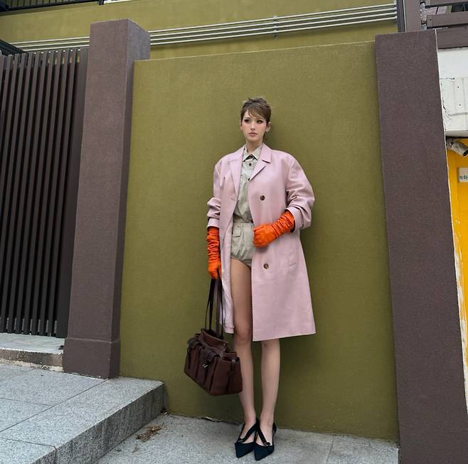 사진 속 전소미는 카키색의 셔츠와 미니 쇼츠를 매치한 톤온톤 스타일링 위에 연한 핑크톤 가죽 코트를 걸쳐 과감하고 세련된 아우라를 완성했다.