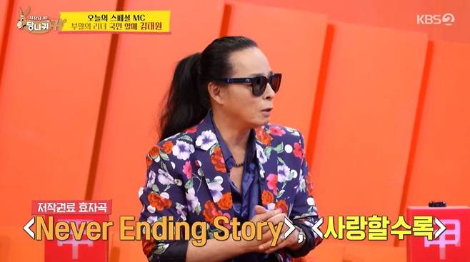 이날 김태원은 "저작권료도 엄청날 거 같은데 어떤가"라는 질문에 "내가 직접 잘 나온다고 하긴 뭐한데 그래도 효자곡을 꼽자면 '사랑할수록'과 '네버 엔딩 스토리'가 잇다. 이 두 곡이 가장 잘 나온다"고 답했다.