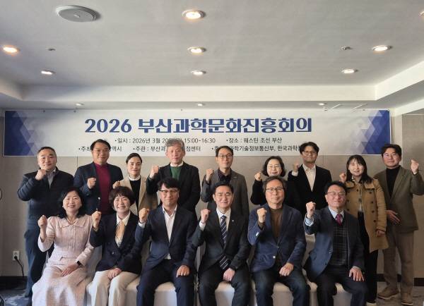 부산시는 지난 20일 오후 해운대 웨스턴조선호텔부산에서 '2026 부산과학문화진흥회의'(사진)를 열고 AI가 주도하는 변화의 시대에 필요한 지역 맞춤형 과학문화 확산 활동 방향을 논의했다.