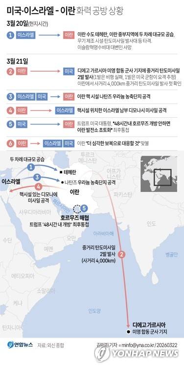 (서울=연합뉴스) 김민지 기자 = 미국과 이스라엘의 이란 공습으로 전쟁이 시작된 지 22일째인 21일(현지시간) 양측은 서로 핵시설 인근 지역을 타격하며 공방을 이어갔다.