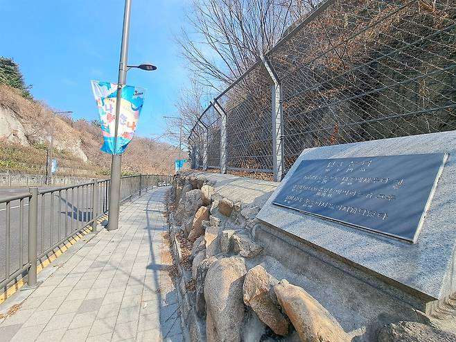 | ▲ 남소문 터 남소문이 서 있었다는 흔적이 작은 표석으로만 남았다. 옆이 장충단로로 동대문~한남동을 잇는다. |