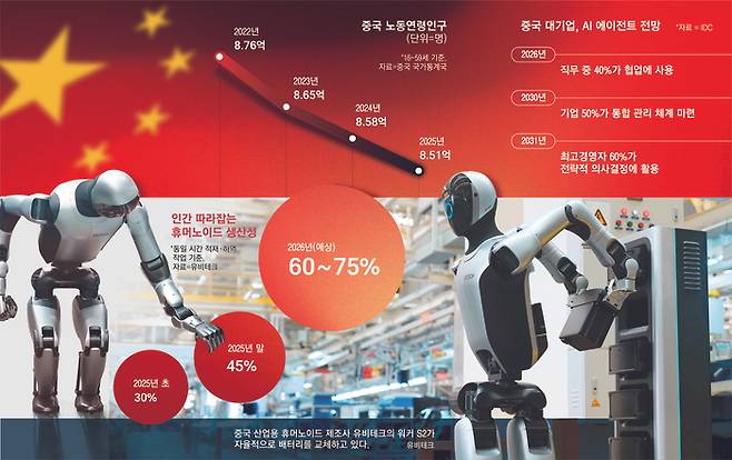 이런 현상은 통계로도 감지된다. 중국 노동연령인구인 16~59세는 2011년을 정점으로 매년 수백만 명씩 급감하고 있는데, 그 빈자리를 인공지능(AI)과 로봇이 채우고 있는 것이다.
