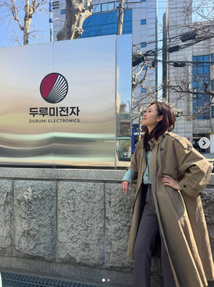 공개된 사진 속 공효진은 드라마 촬영 중인 모습을 담앜ㅅ다. ‘두루미전자’라고 적혀있는 간판 앞에 포즈를 취한 그는 슬렉스에 셔츠, 트렌치코트를 매치해 봄룩을 완성했다.