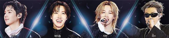 방탄소년단(BTS)이 21일 서울 광화문광장에서 'BTS 컴백 라이브: 아리랑' 발매 기념 컴백 공연을 하고 있다. 빅히트 뮤직·넷플릭스 제공