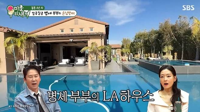 김병세 아내는 "전 조그맣게 주얼리숍한다. 원래 디자이너고, 스시 케이터링 회사도 다녔다. 먹고 살려고 다 해봤다"라며 주얼리 브랜드 대표라고 소개했다. 이어 김병세는 LA 집을 공개하며 "약 300평"이라고 밝혔다. 경제권은 아내에게 있다고.