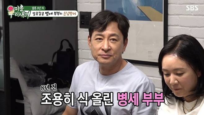 두 사람의 알콩달콩한 모습을 보며 서장훈 역시 "굉장히 좋아하시는 게 그냥 봐도 보인다"라고 말했다. 이어 임원희, 김승수가 오자 김병세는 "우리 동네에선 대장금으로 소문났다. 평소에 지인들을 많이 초대하는데, 처음 아내 음식 맛을 보면 또 초대해 달라고 한다"라고 연신 자랑했다.