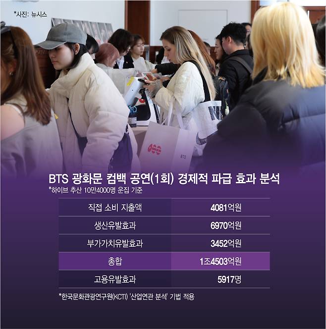 BTS 광화문 컴백, 단일 공연 1조4503억 효과…'BTS노믹스 2.0' 개막
