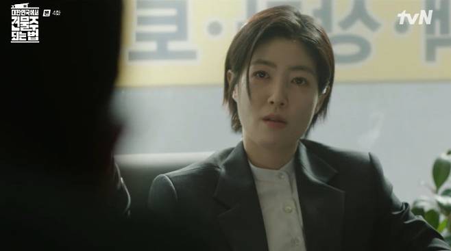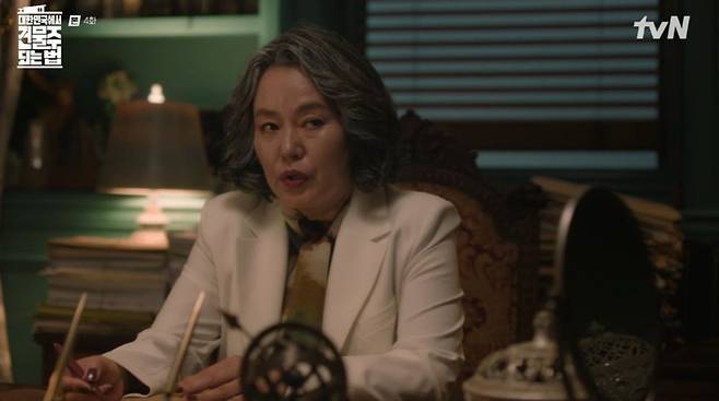 22일 tvN '대한민국에서 건물주 되는 법'에선 선(임수정 분)이 활성(김준한 분)과의 불륜을 이유로 요나(심은경 분)에게 약점이 잡혔음을 알고 분개하는 수종(하정우 분)의 모습이 그려졌다.