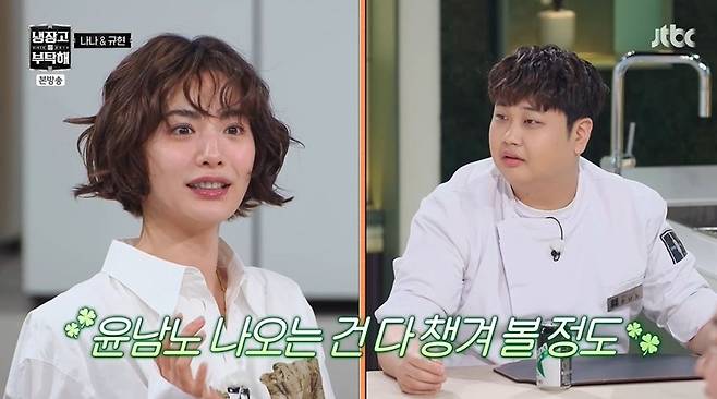 음료를 먹다 깜짝 놀란 윤남노는 "저요?"라고 했고, 나나는 "나오시는 방송 다 챙겨봤다. 제가 충청도 사람이라, 셰프님 느낌이 충청도 느낌이 났다"라고 친밀감을 드러냈다.