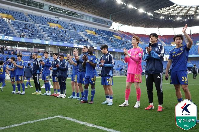 울산은 22일 문수축구경기장에서 열린 김천상무와의 하나은행 K리그1 2026 5라운드 맞대결서 득점 없이 0-0으로 비겼다.