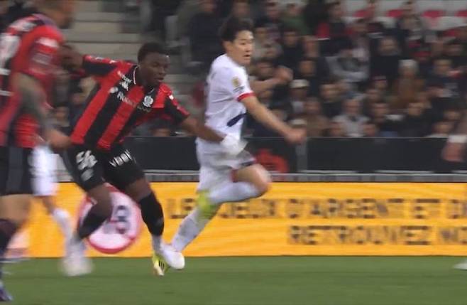 이날 4-3-3 전형에서 측면 미드필더로 선발 출전한 이강인은 후반 12분 니스 미드필더 유수프 은다이시미예에게 왼발 아킬레스건을 밟혀 그라운드에 쓰러졌다.