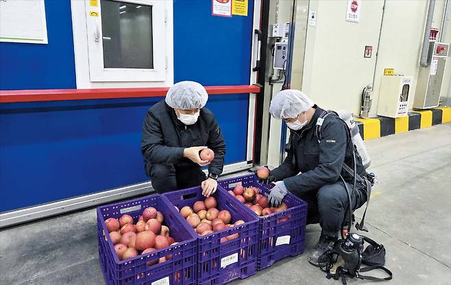 지난 17일, 산소 마스크를 쓴 롯데마트 직원들이 충북 증평의 롯데신선품질혁신센터 기체제어(CA) 저장고 문을 열고, 6개월간 창고 안에서 잠자고 있던 사과를 꺼냈다. 일반적으로 3~4월은 사과의 맛과 식감이 떨어지는 시기로 알려져 있지만 저장고에서 꺼낸 사과는 제철 사과를 수확했을 때 상태를 유지하고 있었다. 저장고 내 산소 농도를 조절해 사과의 노화를 늦추는 CA(Controlled Atmosphere) 기술 덕분이다.