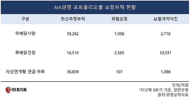 [IB토마토 황양택 기자] AIA생명이 달러 연금보험 중심의 자산연계형 상품 매출이 크게 늘었지만 보험손익은 오히려 부진한 상황이다. 보험영업 포트폴리오 중심이 연금 상품으로 이뤄졌는데, 이는 보험손익 내 핵심인 보험계약마진(CSM) 확보에 비효율적이기 때문이다. 투자손익을 우수하게 거두고 있지만 보험손익과 격차가 벌어진 점이 과제로 남았다.