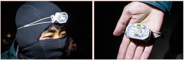 애초에 새벽이나 야간 러닝용으로 출시된 모델이다. 작고 날렵한 모양에서 이전까지 사용했던 헤드랜턴과는 확연히 다른 인상을 받았다. 고무 재질의 밴드는 유연하고 가벼워 마치 헤드밴드 하나만 두른 듯한 느낌. 램프 본체는 납작해서 역동적인 움직임(수차례의 헤드뱅잉)에도 덜렁거리지 않고 미동도 없었다. 렌즈가 아래로 기울어져 있어 별도의 조절 없이 최적의 각도로 발 앞을 비출 때 든 생각, "디테일이 남다르다."