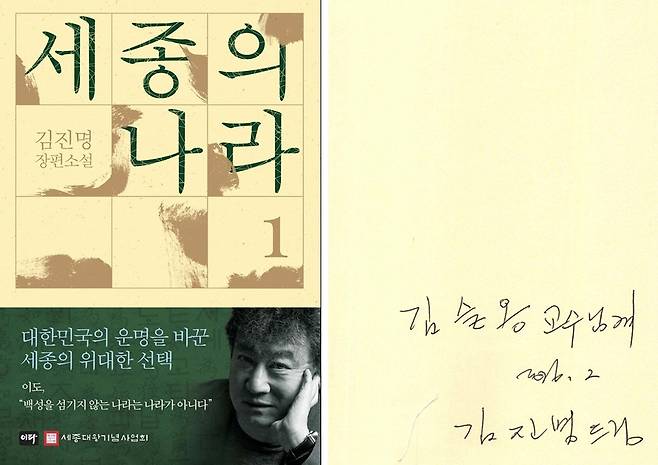 | ▲ 책 표지와 한글학자인 필자에게 보낸 작가의 헌정 서명 |
