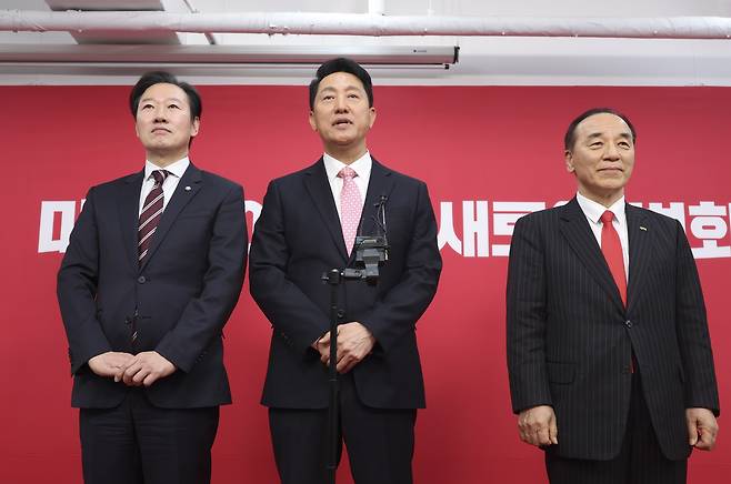 | ▲ 백브리핑하는 국민의힘 서울시장 예비후보들 6·3 지방선거 서울시장에 도전하는 국민의힘 예비후보들이 22일 서울 영등포구 여의도 국민의힘 중앙당사에서 열린 광역단체장 후보 면접을 마치고 백브리핑을 하고 있다. 왼쪽부터 국민의힘 박수민 의원, 오세훈 서울시장, 김충환 전 강동구청장. 2026.3.22 [공동취재] |