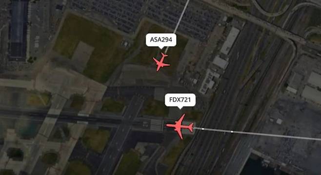 알래스카 항공기는 다시 상승하는 중이었고, 페덱스 화물기는 그대로 착륙을 시도하는 상황이었다.