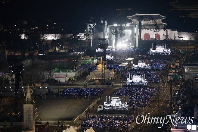 관객 규모도 실제보다 부풀려졌다. 애초 이날 공연장 주변에는 공식 좌석 2만 2천여 명을 포함해 최대 26만 명이 모일 것으로 예상됐지만, 실제 주최 쪽 하이브 추산 약 10만 4천 명, 행정안전부 추산 약 6만 2천 명 정도가 모인 것으로 확인됐다(관련 기사 : 'BTS공연' 26만 온다더니... 엉터리 예측에 공무원 과다 동원 논란 https://omn.kr/2hgnk ).