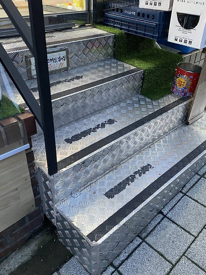 | ▲ 서울 시내 한 편의점 입구 계단 편의점 입구에 단차가 큰 계단이 있다. |