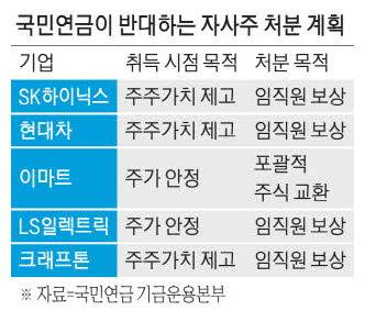 국민연금 기금운용본부는 "자사주 취득 당시 공시 목적은 적정 주가 확보를 통한 주주가치 제고"라며 "임직원 보상이나 우리사주제도 목적으로 자사주를 처분하는 계획은 취득 당시 공시와 일관되지 않는다"고 지적했다.