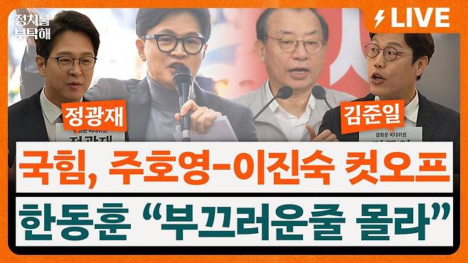 ▶김준일: 그러니까 제가 말하는 건 뭐냐 하면은 주호영 의원은 이미 장동혁 대표랑 같이 가기는 힘들어요. 그러니까 이게 이정현 공관위원장의 의중이 실렸다지만은 장동혁 대표가 오케이를 한 거잖아요. 주호영 쳐내는 거를 그러니까 이정현은 과거에 친이계들 비박들을 쳐내는 거고 그중에서 장동혁 대표는 본인한테 대들거나 껄끄러운 얘기를 한 사람들은 꼭 공통분모가 있으면 교집합 c그룹.