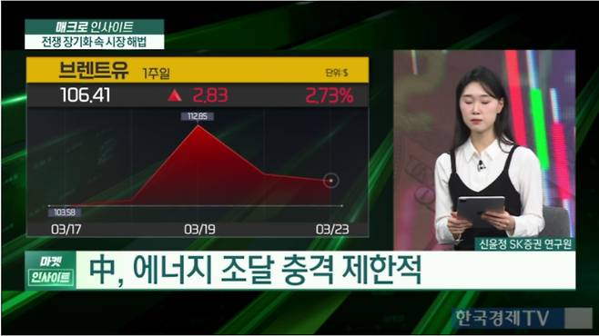 신윤정 SK증권 연구원은 23일 한국경제TV에 출연해 "중국과 러시아가 이번 전쟁으로 크게 이득을 봤다기보다는 미국보다 상대적으로 유리하거나 손해를 적게 본 것으로 봐야 한다"며 "반사이익의 수혜국이라는 평가는 맞지만 그 정도는 제한적"이라고 말했다.