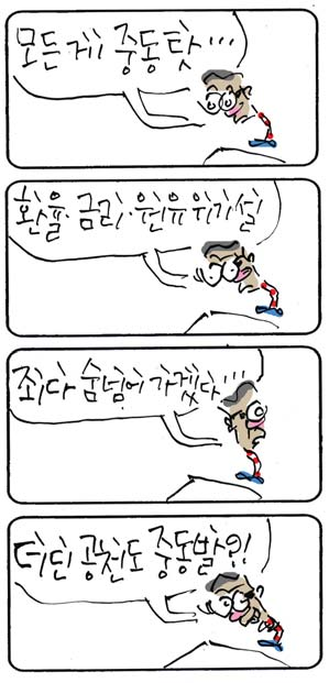 [최경락 꼬투리] 모든 게 중동 탓… 최경락 2026. 3. 23. 20:33 음성으로 듣기 음성재생 설정 이동 통신망에서 음성 재생 시 데이터 요금이 발생할 수 있습니다. 글자 수 10,000자 초과 시 일부만 음성으로 제공합니다. 남성 여성 느림 보통 빠름 음성 재생하기 닫기 음성 재생 중지 번역 설정 번역beta Translated by kaka i 한국어 - English 영어 日本語 일본어 简体中文 중국어 Nederlands 네델란드어 Deutsch 독일어 Русский 러시아어 Malaysia 말레이시아어 বাঙ্গোল ভাষা 벵골어 tiếng Việt 베트남어 Español 스페인어 اللغة العربية 아랍어 Italiano 이탈리아어 bahasa Indonesia 인도네시아어 ภาษาไทย 태국어 Türkçe 튀르키에어 Português 포르투갈어 Français 프랑스어 हिन्दी 힌디어 닫기 번역중 Now in translation 글씨크기 조절하기 글자크기 설정 파란원을 좌우로 움직이시면 글자크기가 변경 됩니다. 가 매우 작은 폰트 작은 폰트 보통 폰트 큰 폰트 매우 큰 폰트 가 이 글자크기로 변경됩니다. (예시) 가장 빠른 뉴스가 있고 다양한 정보, 쌍방향 소통이 숨쉬는 다음뉴스를 만나보세요. 다음뉴스는 국내외 주요이슈와 실시간 속보, 문화생활 및 다양한 분야의 뉴스를 입체적으로 전달하고 있습니다. 닫기 인쇄하기 Copyright © 저작권자 © 중부일보 - 무단전재 및 재배포 금지