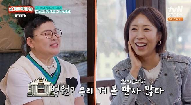 이영자는 정선희를 향해 "너도 법원에 가면 우리 거 봤다는 판사 많다"라며 "나 지방흡입 났을 때 담당 검사가 조서를 친절하게 잘 써줬다. 팬이라고 하더라"라고 고백했고, 정선희는 "내가 거기까진 못 가봤다. (내 시련은) 소소하네. 법원을 못 가봤네"라고 너스레를 떨었다.