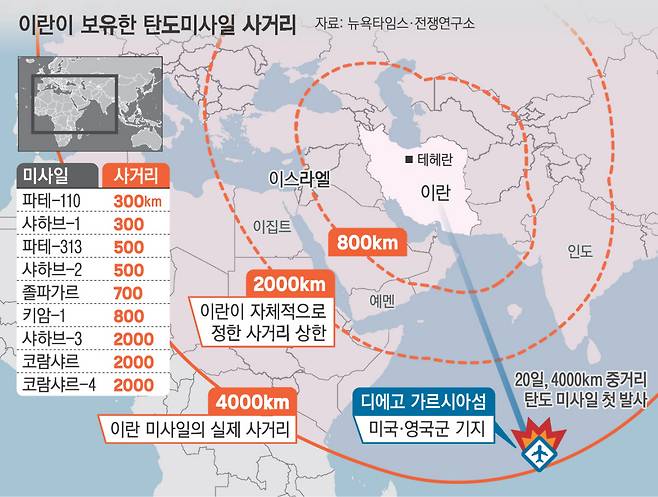 이란이 같은 날 인도양 디에고 가르시아에 있는 영국 군사기지를 향해 탄도미사일을 발사하면서 영국에서도 이란의 미사일 역량에 대한 경계심이 높아지고 있다. 이번 미사일 발사를 통해 영국 런던과 프랑스 파리 등이 이란의 사정권 내에 있다는 점이 확인됐다는 것이다. 다만 스티브 리드 영국 주택지역사회장관은 “이란이 영국을 겨냥하고 있다거나 겨냥할 수 있는지에 관한 구체적인 평가가 없다”고 말했다.