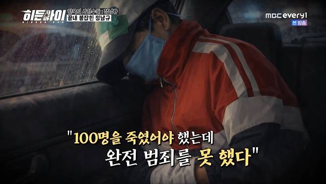 23일 방송된 MBC에브리원 범죄 분석 코멘터리 프로그램 '히든아이'에서는 유영철과 같은 시기에 범죄를 저질렀던 또 다른 희대의 연쇄살인마 정남규에 대한 이야기가 그려졌다.