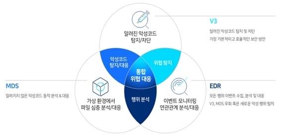 안랩 역시 안티바이러스와 차세대 보안 기술 간의 관계를 ‘보완적 구조’로 설명한다. 안랩은 “안티바이러스가 알려진 악성코드를 실행 단계에서 빠르게 차단해 공격 표면을 줄이고, EDR·XDR은 침투 이후 행위 분석과 위협 추적에 강점을 가진다”며 “두 기술은 대체 관계가 아니라 서로 역할을 나누는 계층형 방어 구조로 함께 작동할 때 가장 높은 보안 효과를 기대할 수 있다”고 밝혔다.